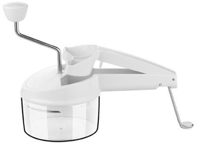 Kiválóan alkalmas az élelmiszerek gyors és könnyű reszelésére, szeletelésére. A csomagolás 3 lemezt tartalmaz, a zöldségek, gyümölcsök, dió, csokoládé, sajt és has. finom és durva reszelése és szeletelése érdekében. A lemezek első osztályú rozsdamentes acélból, a reszelő ellenálló műanyagból készült. Levehető tárolóval és csúszásgátló kiegészítéssel ellátott a biztonságos használat érdekében. A használati útmutató a csomagolás részét képezi. 3 év garancia.